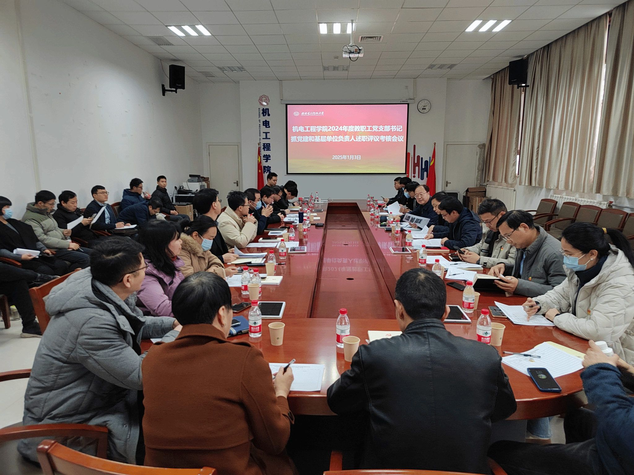在北校区主楼Ⅲ区145北会议室召开2024年度教职工党支部书记抓党建和基层单位负责人述职评议会,党委教师工作部同志,院室领导,“两委”委员,各教职工单位书记、主任(相关负责人)和师生代表参加了会议。