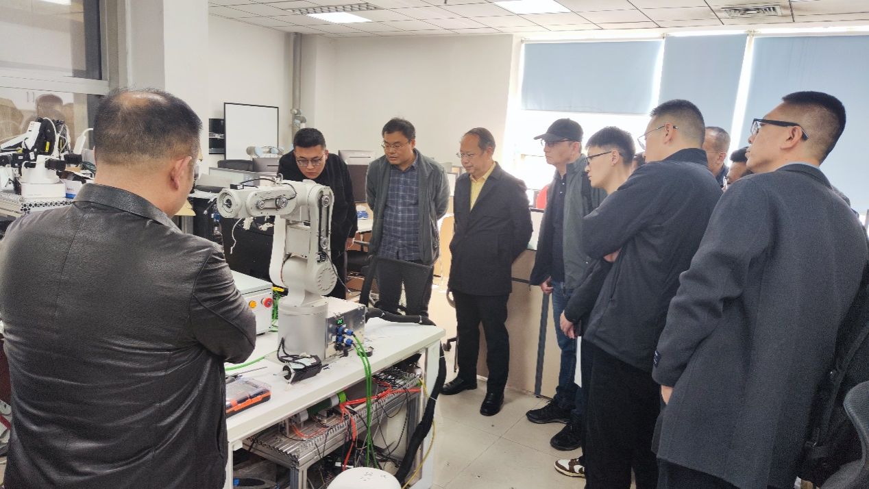 机器人智能制造实验室,听取了实验室在数字孪生工业机器人和具身智能机器人柔顺装配方面的工作介绍。