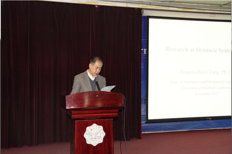 副院长李团结教授邀请,美国南加州大学航天机械工程系终身正教授、南加大航天机械工程系动力系统实验室主任、美国机械工程师协会会士(ASME Fellow)杨秉恩教授来校进行学术交流,并在北校区图书馆西裙楼3楼报告厅作了题为“Modeling & Analysis of Wrinkled Membranes–An Overview”和“Dynamic Analysis of Plates and Shells by the Distributed Transfer Function Method”的两场学术报告。报告会由国产直播