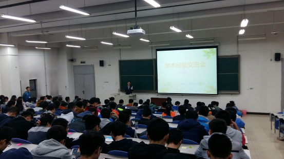 在主持人对嘉宾进行了简单介绍之后,学术经验交流正式开始。四位学长学姐依次上台与在场同学分享自己的经验与想法,讲述各自擅长的领域,教大家一些好的学习方法和生活技能。他们从不同角度、多个方向发表了精彩演讲,告诉大家“态度决定高度,要以严谨的态度对待课堂听讲和课后作业,在认真学习的同时培养交际能力,积极参加国产直播