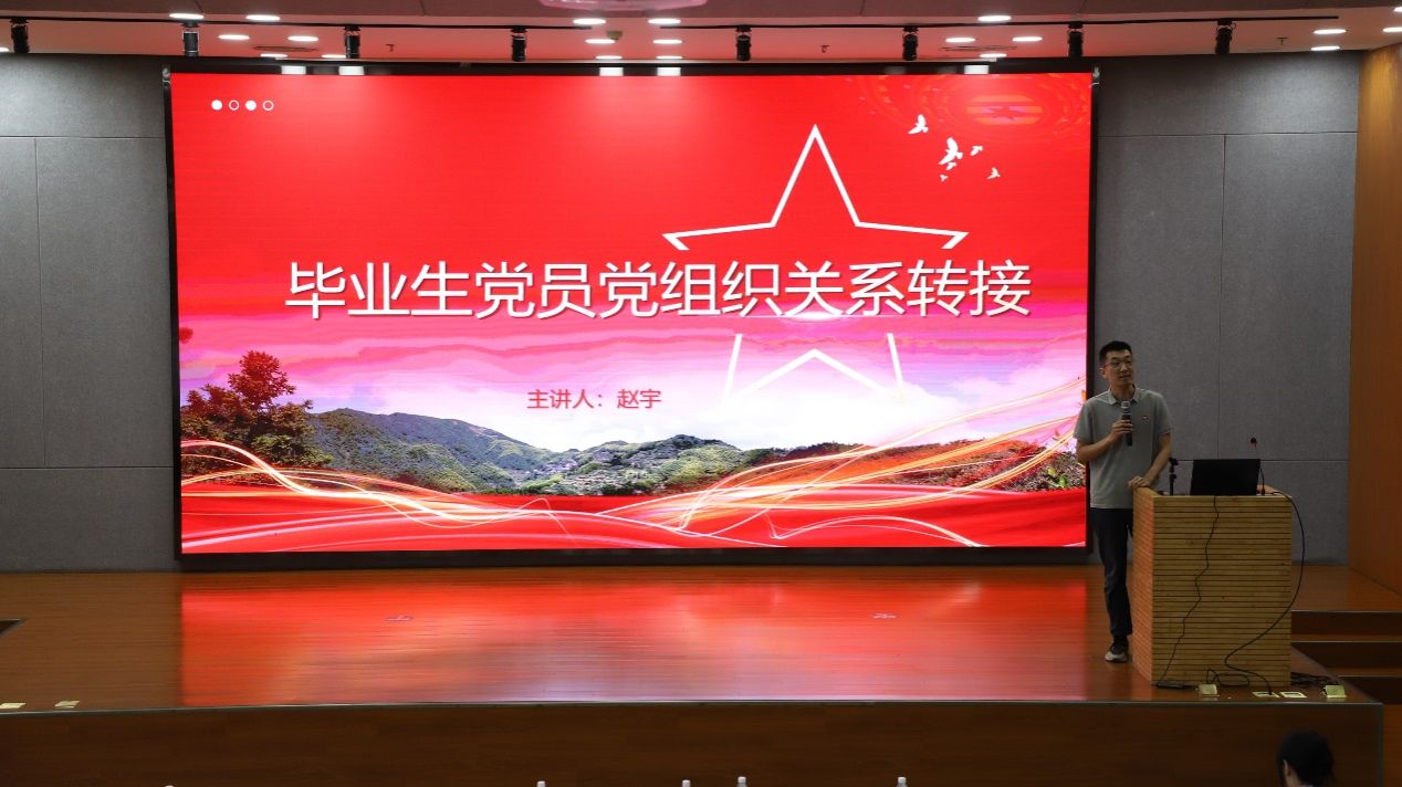 党建与学生工作办主任赵宇进行了党组织关系转出流程介绍,帮助即将毕业的党员同学们更好的进行党组织关系转接。