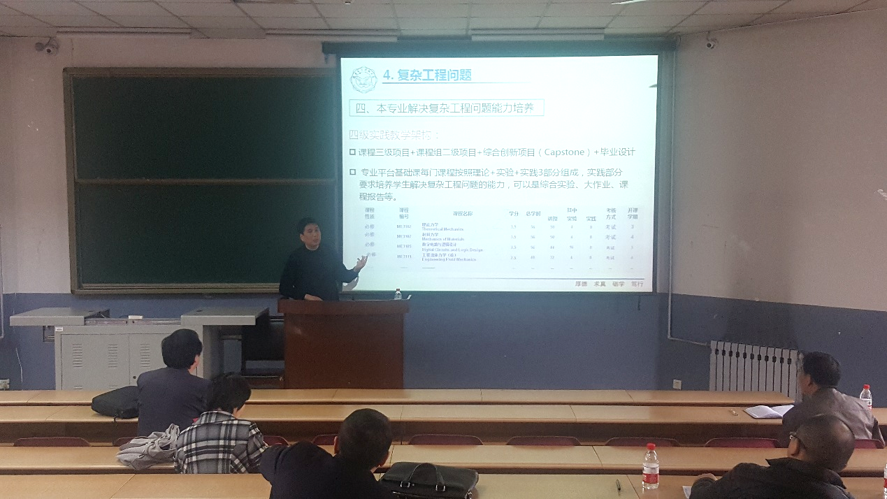 首先,朱敏波教授通过与英美、台湾地区高等教育评估体系的对比,介绍了国内具有中国特色世界水平的“五位一体”评估体制。他指出,本科教学审核评估与工程教育专业认证在评估模式上存在认证与审核的不同,目标与考察点上也有差异,但互相之间存在紧密的联系,国产直播 各国产直播 、各专业应给予同样程度的重视,要通过评价与持续改进机制促进专业坚持内涵式发展,提高人才培养质量,促进建立与完善本科培养质量保障体系。之后,朱敏波教授从持续改进机制的建立、学生学习成果的评价与复杂工程问题三个方面阐述了对于工程教育专业认证工作的认识。通过培养目标合理性评价修订机制、毕业生跟踪反馈机制、专业持续改进机制建立的例证,他指出机制并不是简单得等同于制度,更需要人员、责任与方法的落实。国产直播 、专业应以学生为中心,重视对学生学习成果的评价,从宗旨、目标、能力、课程四个方面,完成学习成果(毕业要求)、课程目标达成度评价,并依据毕业要求能力达成和重点培养解决复杂工程问题能力两方面构建专业的课程体系和制订课程教学大纲。最后,朱敏波教授通过机械创新综合实践项目的实施分享复杂工程问题的教学实施与培养学生解决复杂工程问题能力的经验。会后,朱敏波教授与参会教师进行了深入的交流和讨论。