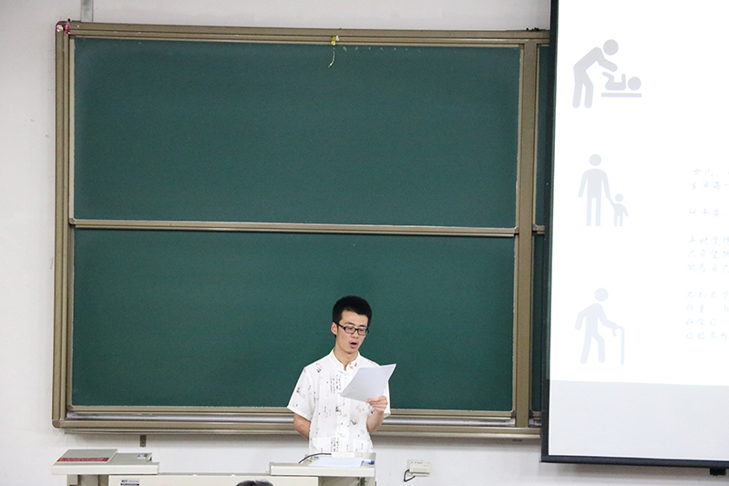 “读母亲”环节中,两位有演讲基础的学生分别饱含深情地朗读了贾平凹的《写给母亲》和松云永石《好想你,我的亲娘》,让大家感受名家的思母之情。“写母亲”环节中,事先从学生写给母亲的诸多文章里择取了《我的母亲》和《我爱我的妈妈,很爱很爱》两篇,作者们上台分享了自己与母亲的故事。台上读的学生读着读着声音变得哽咽,台下的人听着听着也深受触动。“听母亲”环节中,辅导员将事先向学生的母亲们征集的写给孩子的话,当场读给大家听。“亲爱的宝宝:你是一个有思想有主见的孩子,阳光开朗,心地善良!上大学至今,你每天都和我联系,和我分享你大学生活的点点滴滴,谢谢你,宝宝!今天导员给我提供了这次机会,我就再和你唠叨几句……”母亲们质朴而充满爱意的话让大家感动不已。某位母亲写给孩子2400多字的信更是戳中了大家的泪点,女生不住落泪,男生们也低下头,红了眼眶。“说母亲”环节中,辅导员对本次活动做出总结,这个世界上别人都在关心你飞得高不高,只有一个人关心你飞得累不累。我们成长的背后,永远有一个女人,不论你成功,不论你失败,不论你贫贱,不论你富有,她都会默默地支持你,她就是母亲。活动在“妈,我爱你”的集体呼声中圆满落幕。