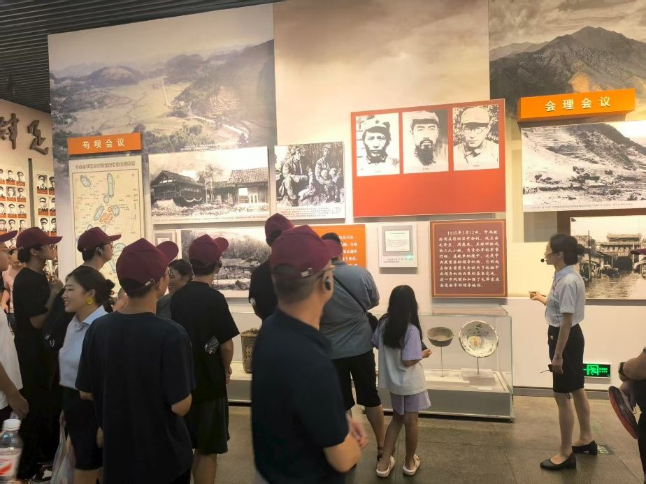 推开那扇镌刻着岁月痕迹的木门,会议室里的场景瞬间将时光拉回90年前。十二把藤椅围绕着一张板栗木长桌,墙上悬挂的军用地图还留有当年标注的红色箭头。讲解员轻声介绍:“就是在这不足20平方米的房间里,连续三天三夜的争论后,中国共产党第一次独立自主地解决了中国革命的重大问题”。党员们凝视着桌上的搪瓷缸与马灯,仿佛能听见当年与会者压低声音的辩论——在第五次反“围剿”失败、长征初期屡遭重创的危急关头,正是这种“不唯书、不唯上、只唯实”的勇气,让中国革命迎来生死攸关的转折。