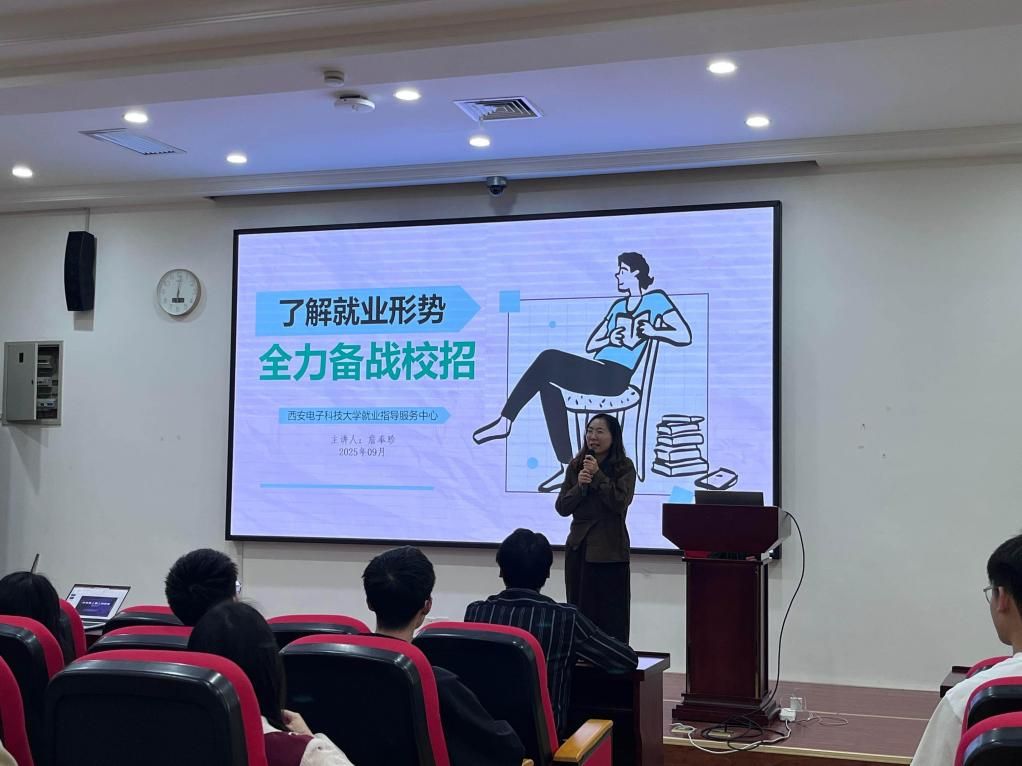 近些年的就业数据,分析了现今就业市场的形势,企业的招聘要求、招聘节奏。同时分析了同学们的对于就业的心态、认知。她强调,就业环境复杂且多变,不能再抱有“等、靠、要”的心态,要提前洞察就业形势,主动做好职业规划,积极提升自身能力,在不断变化的就业市场中把握机遇,为未来职场发展筑牢基础。