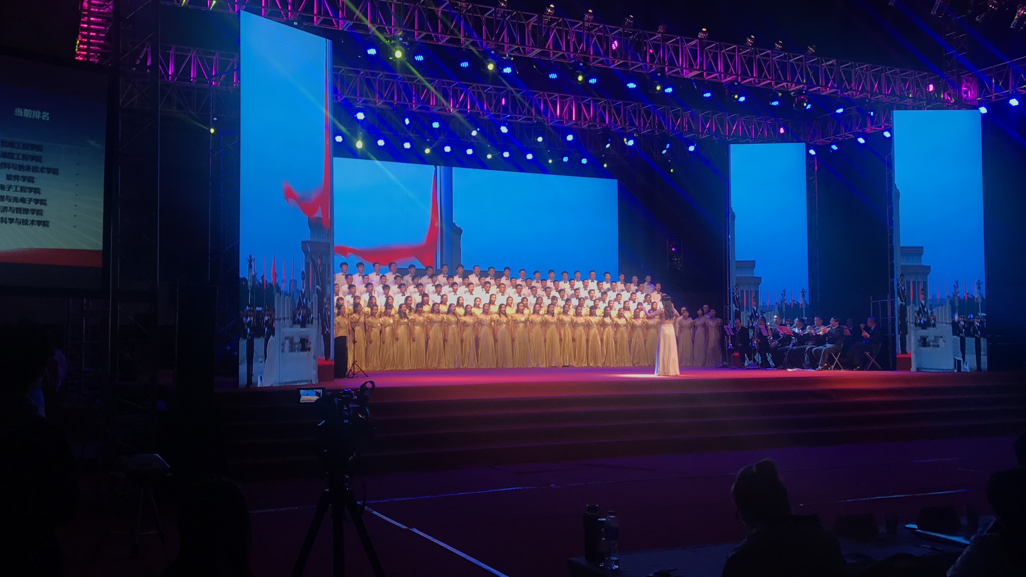 合唱队伍演唱的曲目是《与共和国同行》和《光荣与梦想》,经过一个月的训练,在同学们与带队老师王飞和老师王维佳、石贵利、张育洋的共同努力下,国产直播
