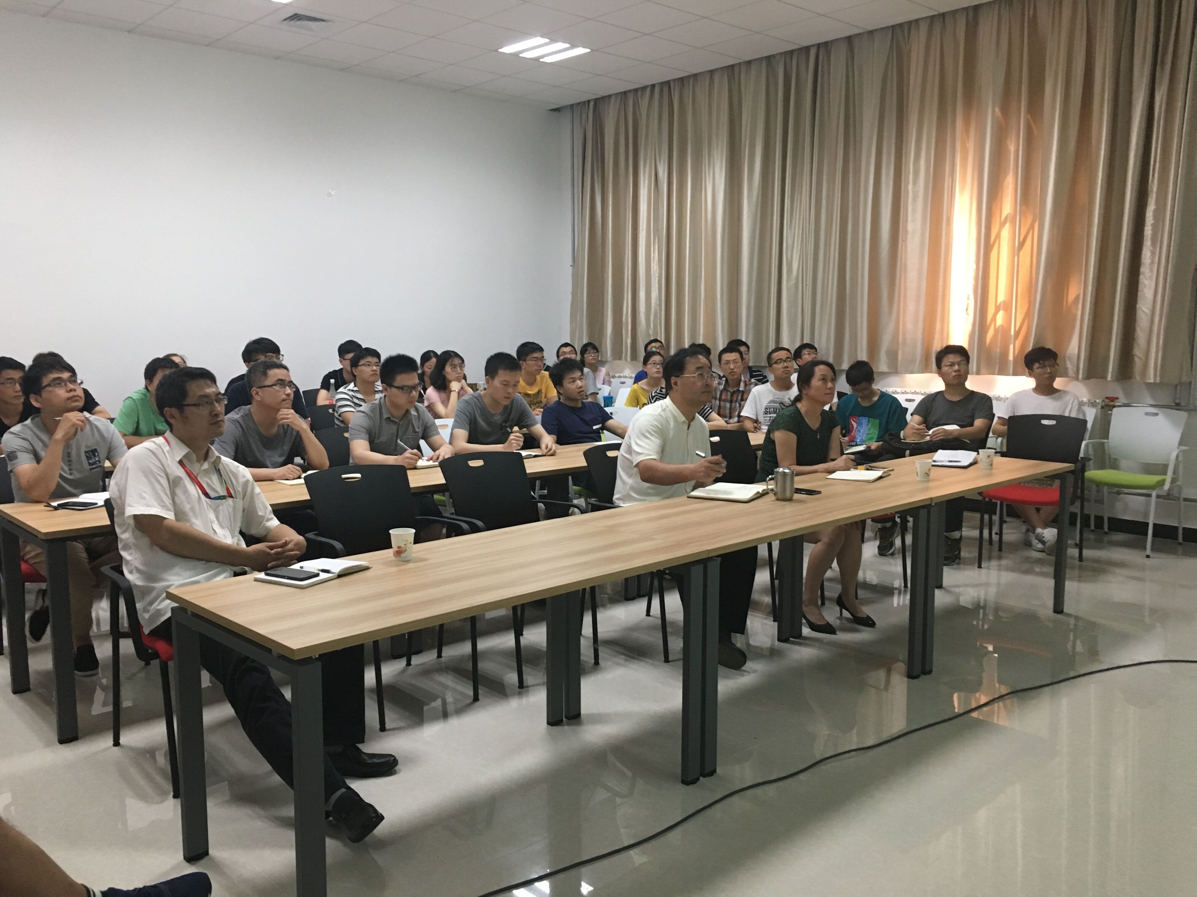师生做了一场题为《在定向能技术中强激光与高功率微波的对比》的精彩学术报告,刘教授渊博的学识和丰富的人生阅历让在场每位听众为之折服。
