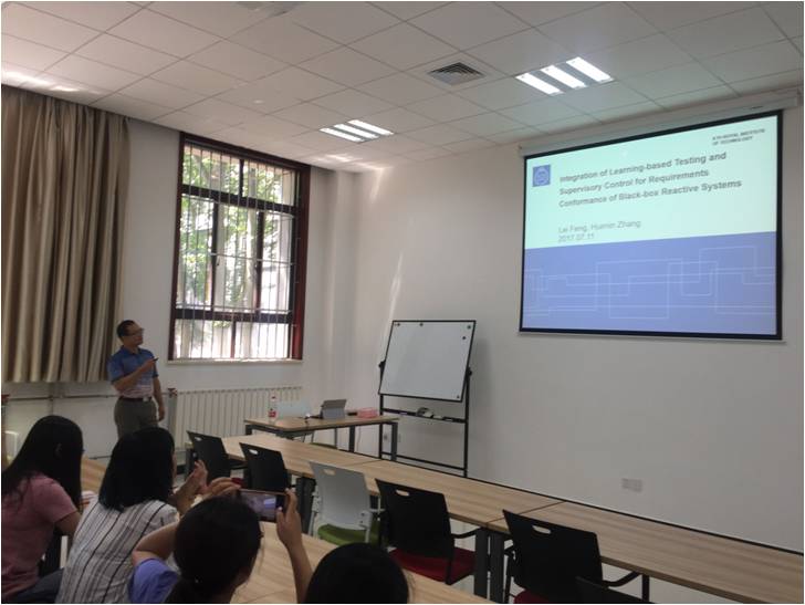 会议室(主楼III-143北)做了题为“ Integration of Learning-Based Testing and Supervisory Control for Requirements Conformance of Black-Box Reactive Systems”的学术报告。
