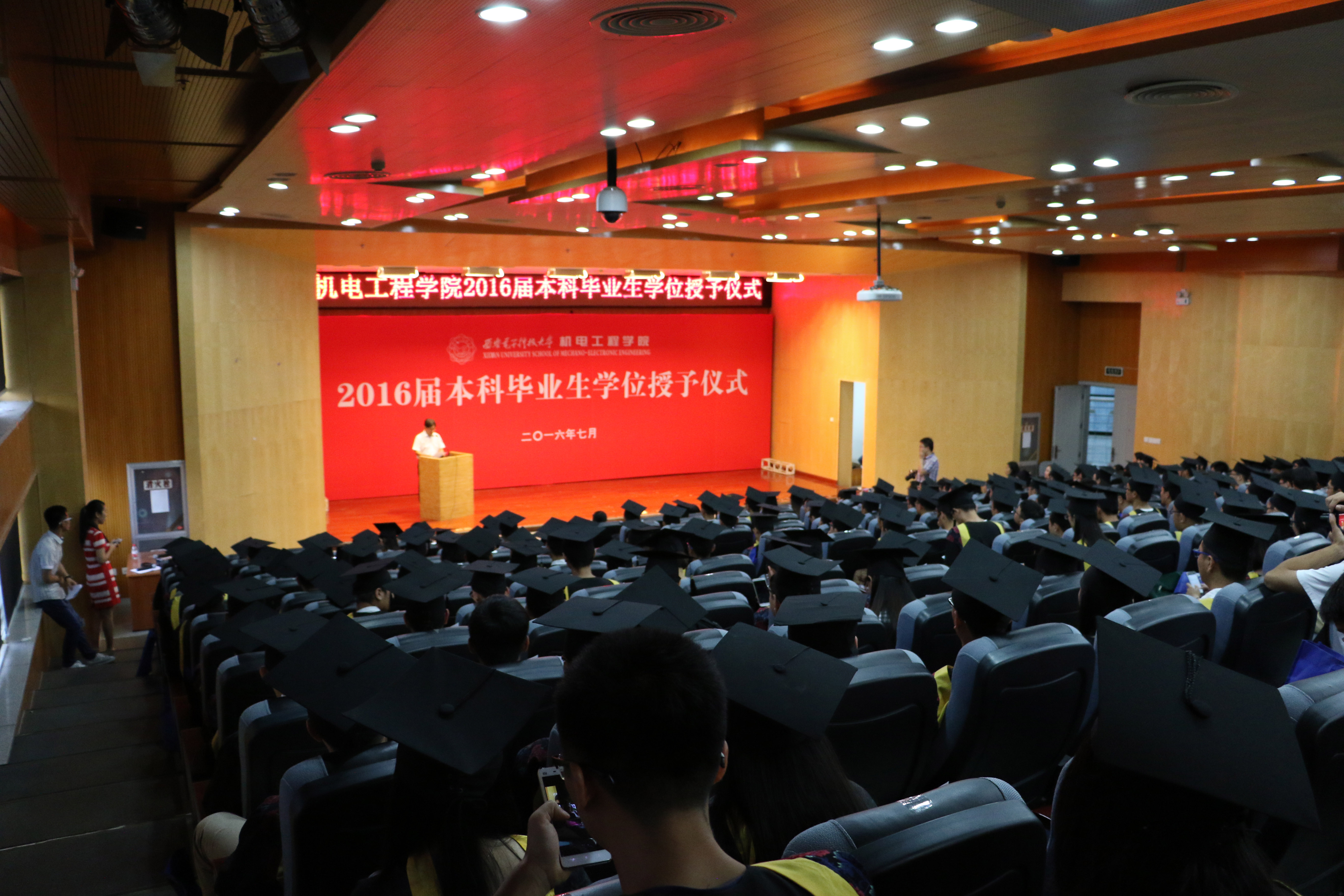 的2016届本科生授位仪式隆重举行。同学们排着整齐的队伍,在主持人宣读自己的名字后,依次登上了主席台。伸手、握手祝贺、颁授学位证书、行拨穗礼、合影,仇原鹰和李团结两位教授为206名毕业生代表依次授位,并对每一位同学表示祝贺。