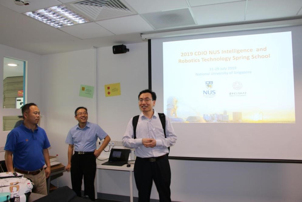 开营仪式由Zhang Rongli博士主持。张博士从活动安排、新加坡国情概况、教育体制和NUS介绍等方面向同学们做了讲解,拉开了智能机器人技术训练营的序幕,让同学对丰富的讲座和体验活动充满了期待。