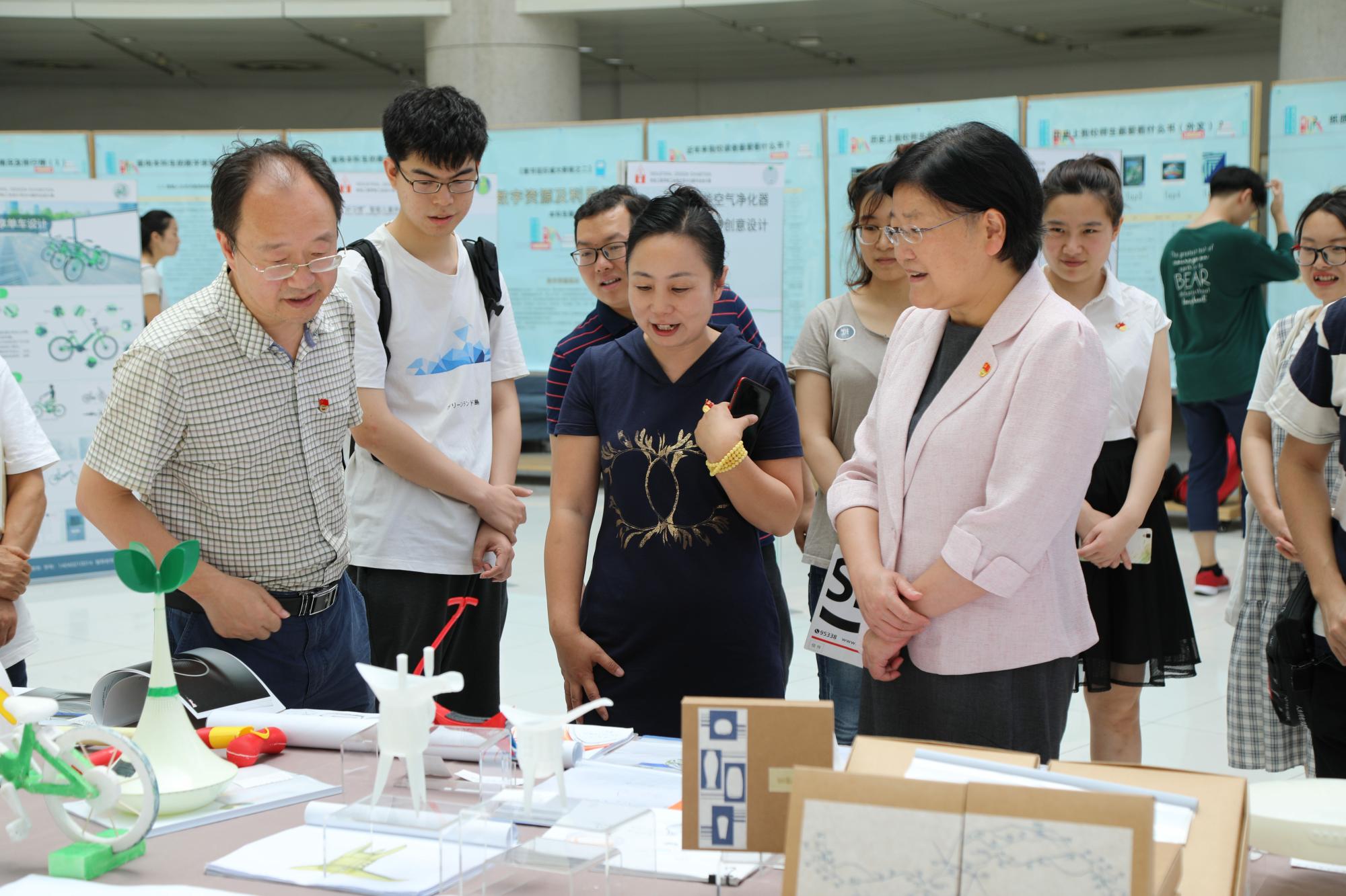参观过程中,郑晓静详细了解了工业设计系的党建工作、专业建设、师资队伍、人才培养、课程实践等相关情况,并逐一参观了所展出的毕业设计作品展板、作品画册、作品实物和模型,现场听取了工业设计系师生代表的细致介绍。