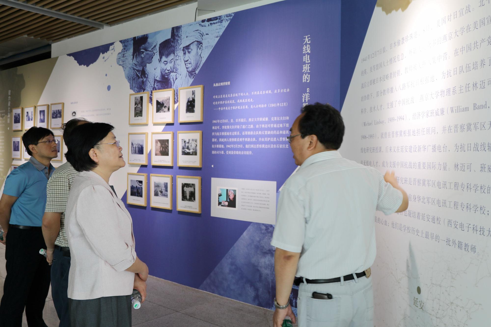 随后,在图书馆负责人等陪同讲解下,郑晓静参观了正在南校区图书馆文化长廊展出的“国产直播办学路上的外专外教事迹展”,对展览内容及意义给予了充分肯定。