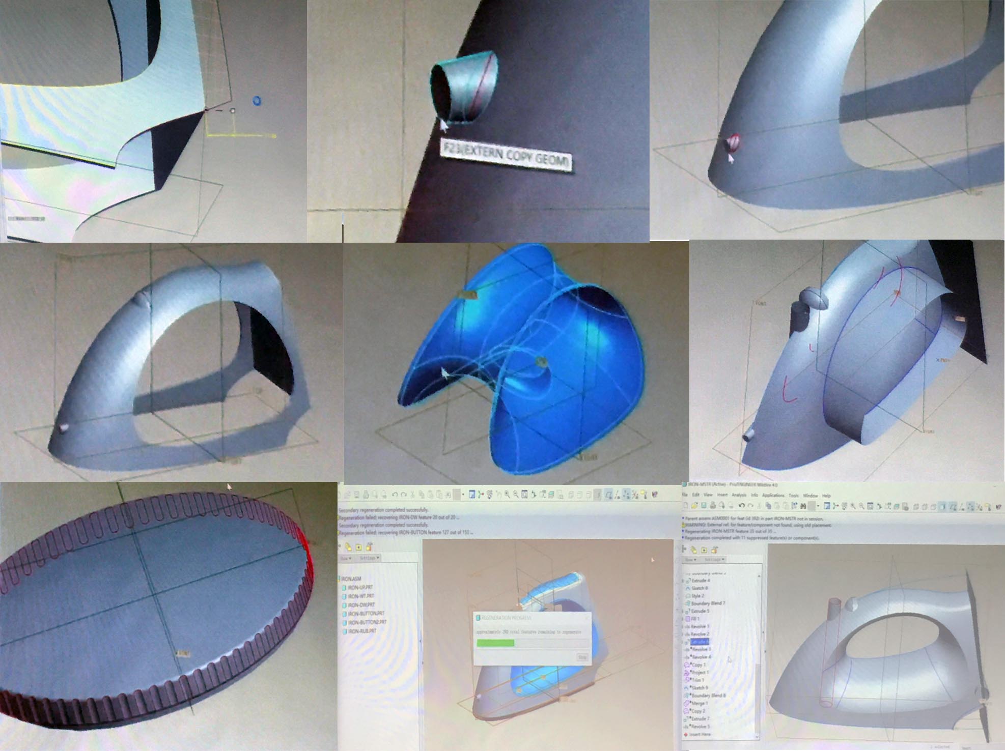 3月14日下午7-8节,刘海安校友应邀在南校区B443教室进行了“高级曲面建模”讲座。产品设计中的产品建模大都要使用三维CAD软件进行曲面造型,以此来构建产品的外观形状并得到实体化模型。在高级曲面建模部分,刘海安校友从曲线的连续(几何连续性、零阶、一阶、二阶连续等)切入,讲述了线与线、面与面的空间连接关系,并基于Pro/E软件,讲述了如何生成四边面,四边面的空间边线的准确绘制与调控。在实际设计中,三边面、多边面的处理方法是将其转化成多个四边面或者使用四边面进行裁剪而成。以电熨斗为例,分析了在设计过程中可能遇到的各种特殊的四边面以及如何处理特定条件下产品曲面的建模,细节部分的明线、暗线装饰线的表现方法与技巧,曲面造型消失面的处理方法。