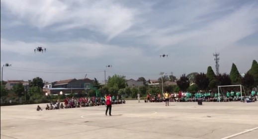 机器人团队的孙伟教授,带领五名学生志愿者携带着专业无人机,为全校同学们进行了精彩的无人机编队表演,博得了孩子们的阵阵掌声,孩子们观赏之后纷纷表示,长大后也想学习无人机技术。