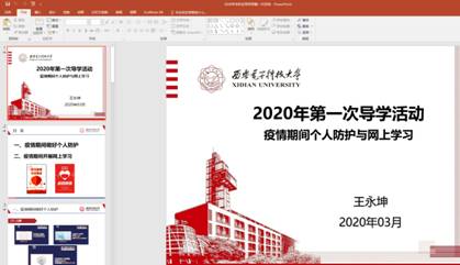 2018级学业导师王永坤通过QQ屏幕共享为他所指导的18名学生进行了疫情期间的第一次导学。导学的主题为《疫情期间个人防护与网上学习》,在导学中为同学们分享了疫情期间个人防护注意事项,以及如何通过“雨课堂”,“国产直播学堂”和“学在国产直播”等网页和app上进行自主学习。