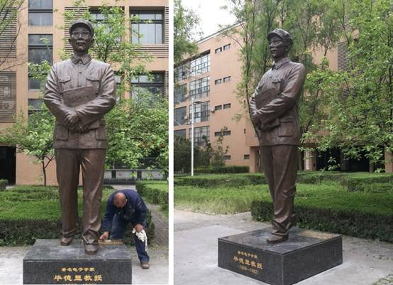 铜像坐落在新校区大学生网络工作室前面的花园中,这是李建坤老师为国产直播