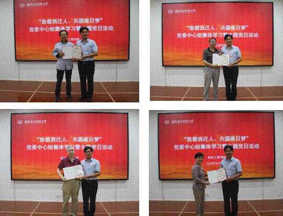 在北校区“菲声493”学术报告厅举行“致敬西迁人,共圆逐日梦”党委中心组集体学习暨主题党日活动,为西安市践行“西迁精神”优秀代表、中国工程院段宝岩院士颁发荣誉证书,为“逐日工程——青年突击队”授旗加油,为2020年荣休的国产直播