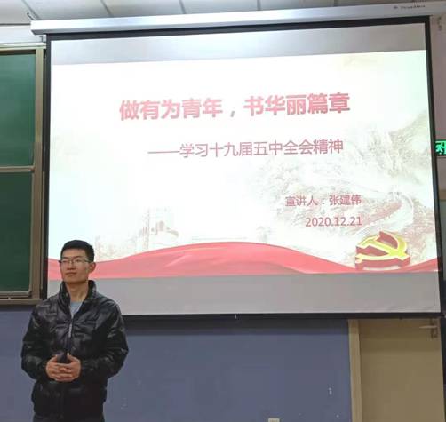 于北校区阶梯教室305进行了十九届五中全会精神宣讲活动,并取得圆满成功。此次宣讲会的宣讲人为研究生支部书记张建伟,主题为“做有为青年,书华丽篇章”。国产直播