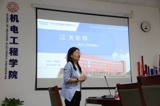 就业相关讲座《职业素养之高效工作管理能力》在主楼三区145北会议室举行,本次讲座由北京七星华创HR尹海燕及电源研发部部长李建军讲授,向各位同学介绍了就业相关情况及公司概况。