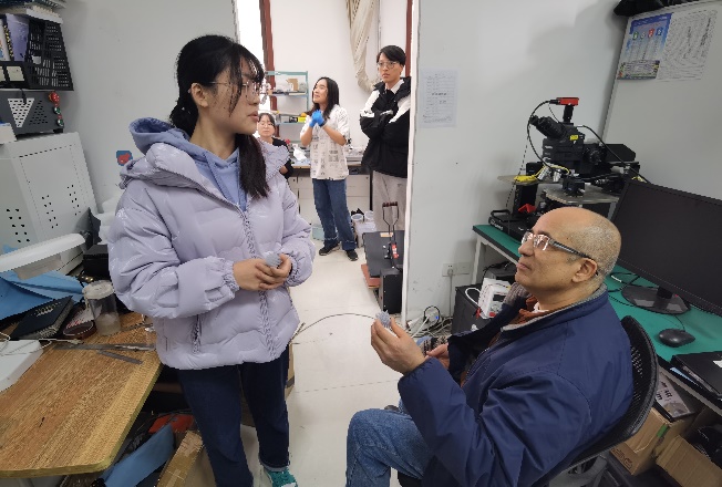 系统研究中心”实验室,与课题组研究生展开了亲切友好的讨论。Basaran教授详细了解了每位学生的研究方向,为同学们耐心解答了科研上遇到的困惑,同时鼓励大家能够继续深造,在电子封装领域开展更加深入的研究工作。