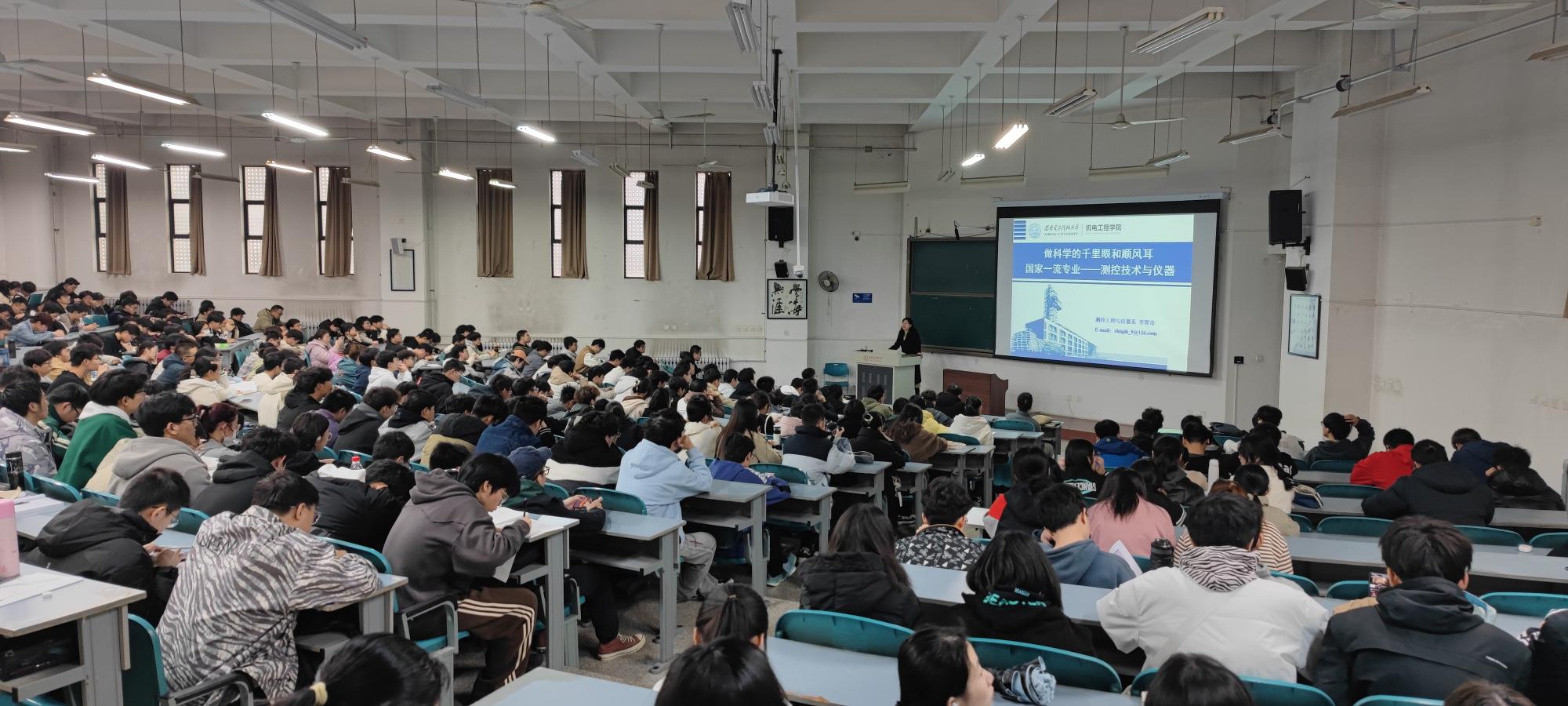 联合丁香书院在南校区D-205开展本科生专业分流周点名暨宣讲活动第一场——测控技术与仪器专业宣讲会。测控技术与仪器专业负责人李智奇、宦惠庭、本科生辅导员和500余名自动化大类本科生参与活动。