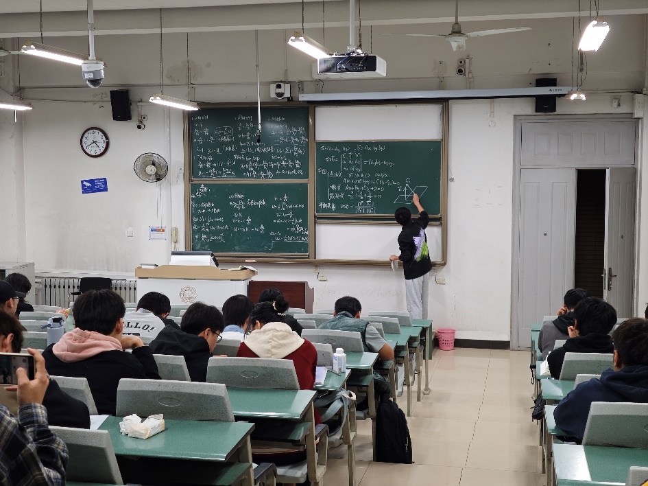 最后陈浩同学给大家讲解了高数。他按照课本知识点,分别从向量、平面、空间直线、曲面、空间曲线的角度出发将第八章内容进行总结归纳。然后从向量的定义出发并逐步归纳向量的性质、运算;之后归纳平面和空间直线常见的表达形式以及面面角、线线角、线面角的计算;最后总结常见的曲面以及空间曲线的投影计算。
