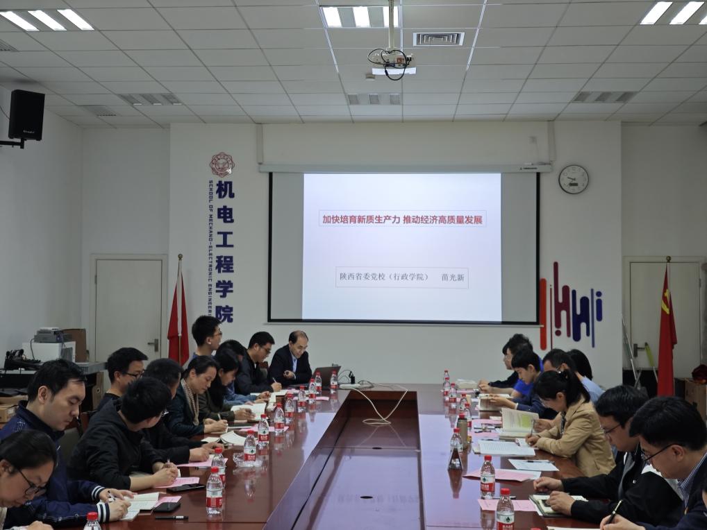 陕西省委党校党史教研部主任苗光新教授为与会师生作了题为《加快培育新质生产力推动经济高质量发展》的专题报告。报告用马克思政治经济学,从新质生产力提出背景及内涵,新质生产力与经济高质量发展的内在逻辑关联,加快培育新质生产力、推动经济高质量发展的着力点三个方面,对新质生产力进行了深入细致的解读和阐释系统的讲授。报告中运用中国城镇固定资产投资、消费者信心指数、出口变化情况、制造业指数等翔实数据,帮助与会人员进一步深刻体会培育新质生产力、建设制造强国的重要性。报告主题鲜明、视野开阔、内容丰富、分析透彻、深入浅出,是一堂既生动又深刻的党性教育课,为国产直播