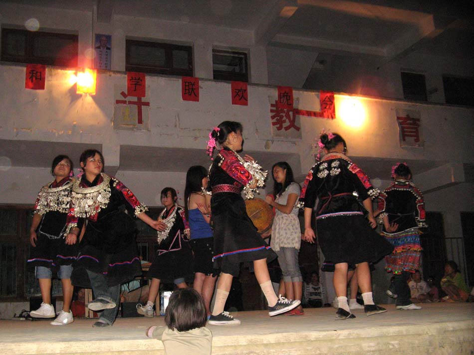 操场播放电影的,吸引了全村的目光,开拓了眼界,通过电影看到外面的世界。同学们举行的运动会,让孩子们在玩的过程中体会到乐趣和竞争;筹办的富有民族特色的联欢晚会,给了孩子们一个展示自我的机会。