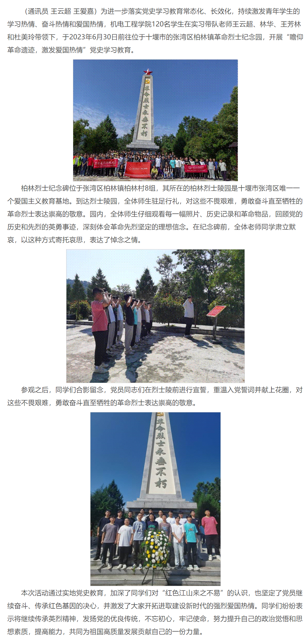 国产直播 赴十堰生产实习师生开展“实习不忘革命先烈,陵园重温入党誓词”党史学习教育