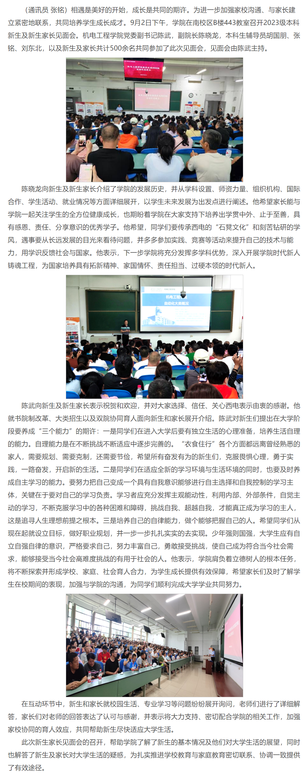 国产直播 顺利召开2023级本科新生及新生家长见面会