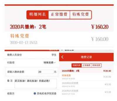 多名党员主动通过武汉慈善总会、陕西慈善总会、村委会、交纳特殊党费等渠道自发捐款,为疫情防控工作贡献爱心。博士班第二党支部聂鹏、丛旭亚通过“国产直播