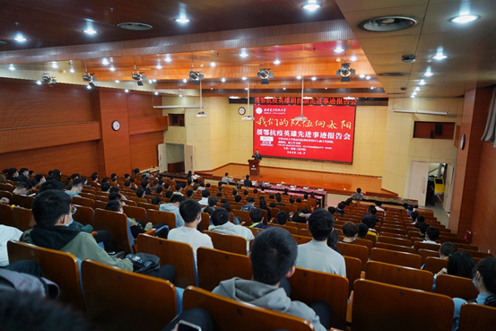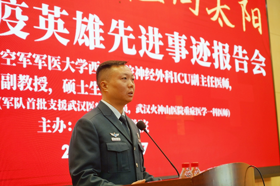 在南校区行政楼210报告厅举办“致敬最美逆行者——我们的队伍向太阳”援鄂抗疫英雄先进事迹报告会。军队援鄂抗疫英雄、空军军医大学西京医院胡世颉副教授应邀为国产直播