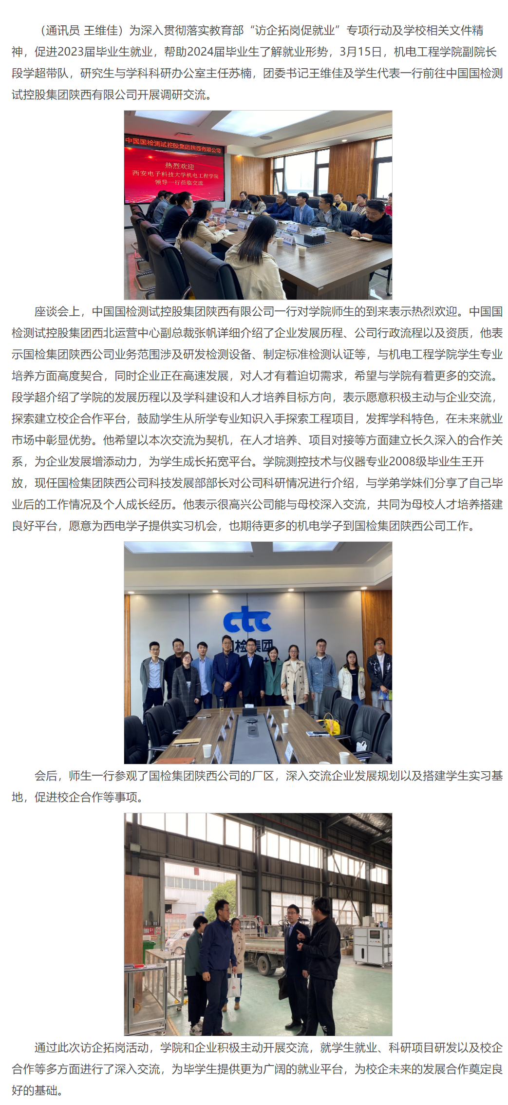 国产直播 赴中国国检测试控股集团陕西有限公司开展访企拓岗专项行动