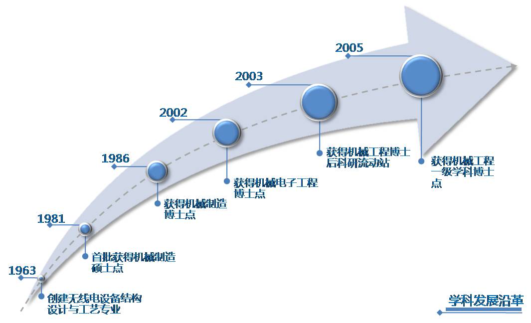 结合的交叉学科之一,历史悠久,底蕴深厚。1981年首批获得机械制造硕士点,1986年获得机械制造博士点,2002年获得机械电子工程博士点,2003年获得机械工程博士后科研流动站,2005年获得机械工程一级学科博士点。