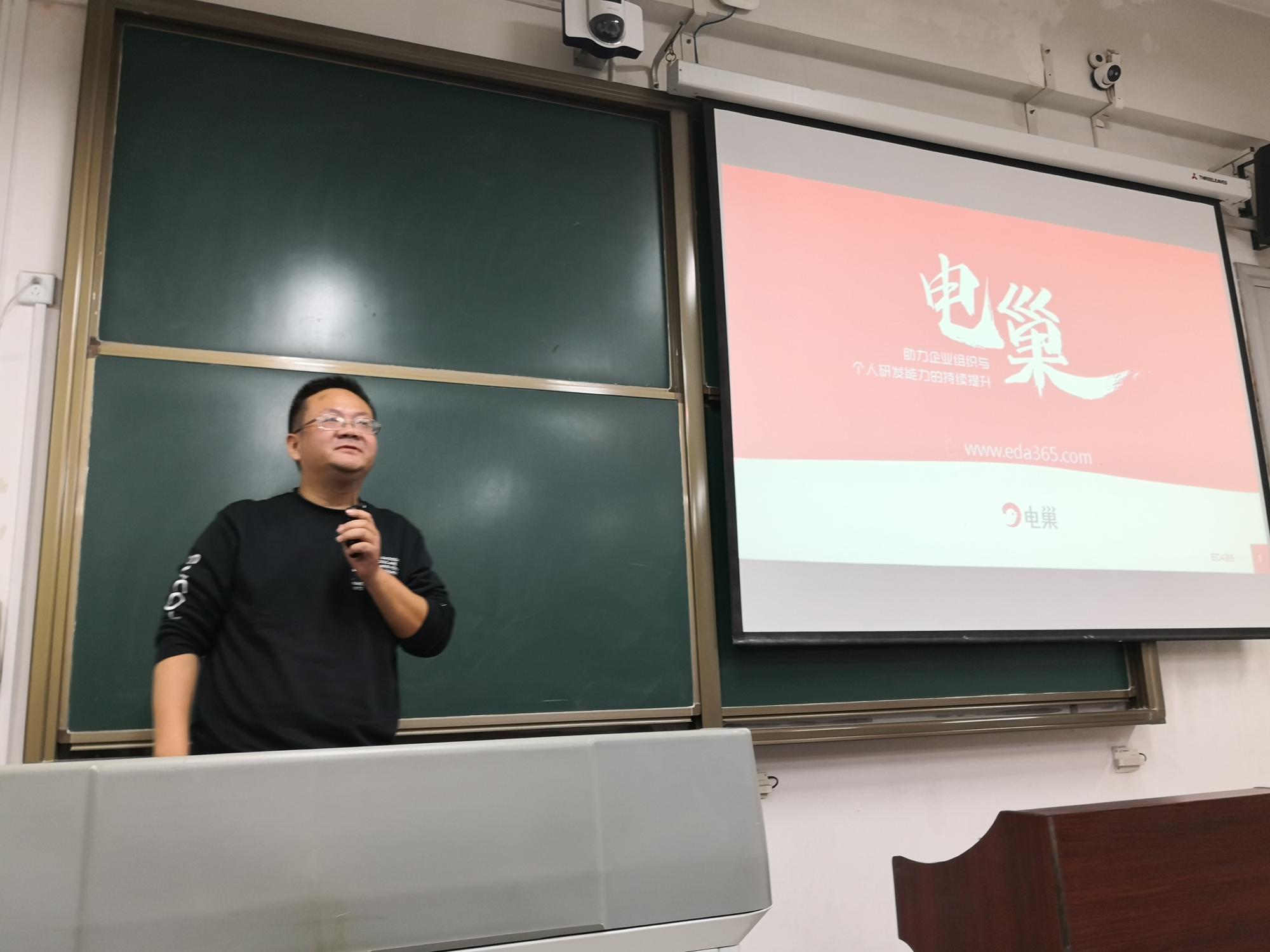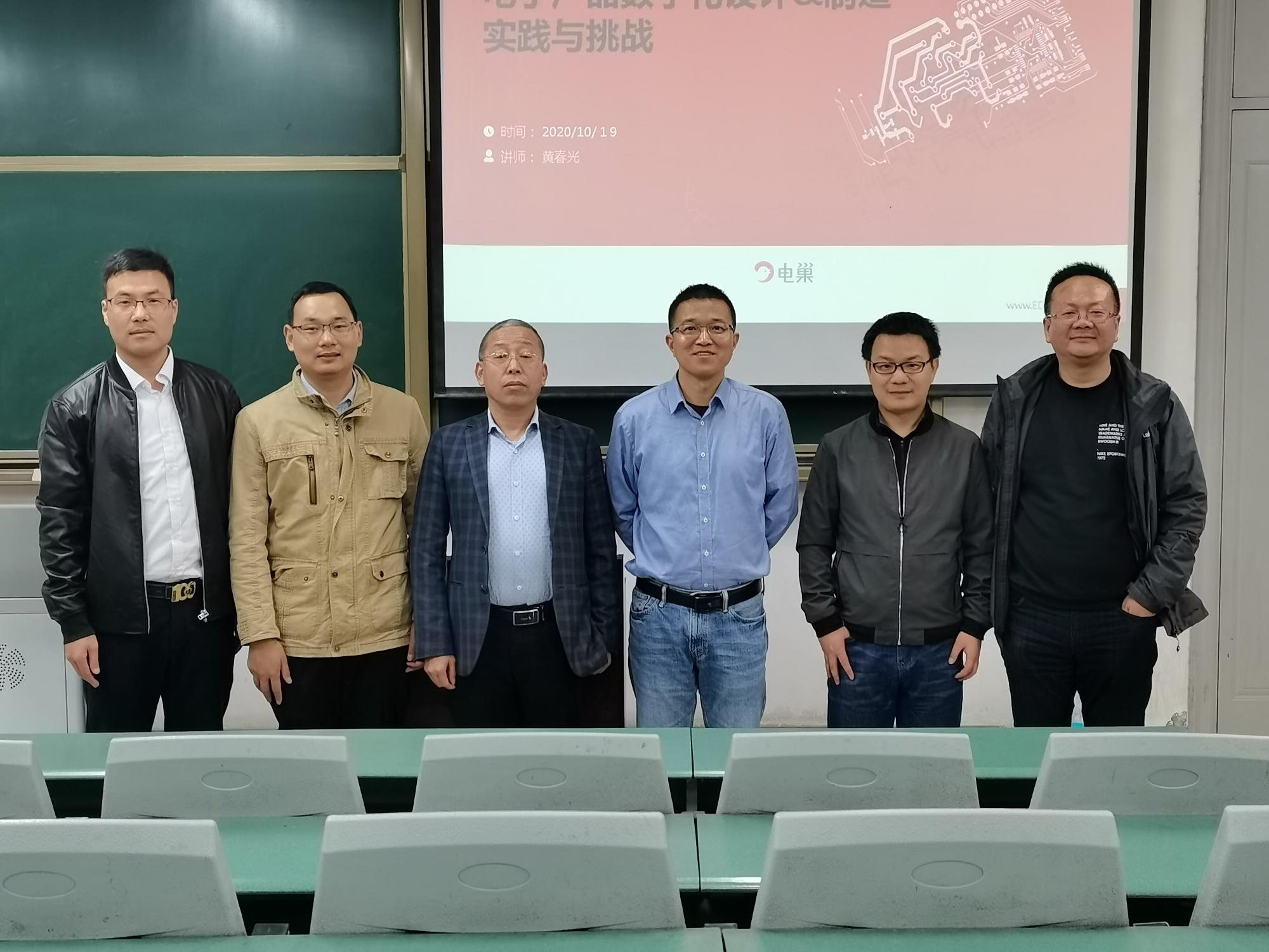 院师生作题为“电子产品数字化设计&制造实践与挑战”的报告会,本场报告会于南校区A105教师举行,报告由王永坤主持,电子封装系主任周金柱,测控系刘岩以及电子封装系与测控系学生参加了这次报告会。