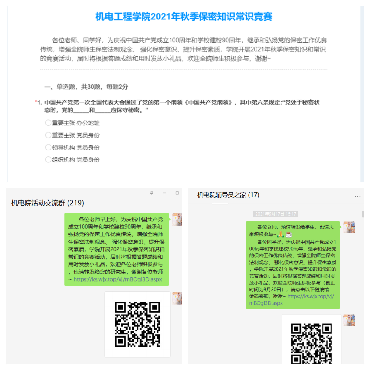 于9月中下旬开展了2021年秋季保密知识和常识竞赛答题活动,通过微信群、国产直播