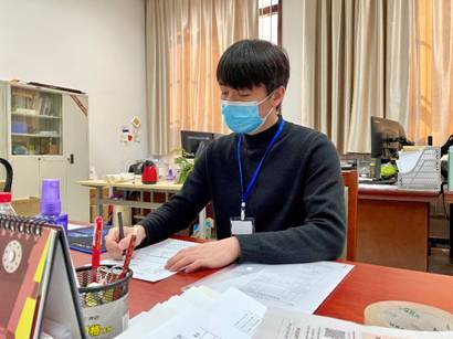 硕士2019级班长、研04192党支部组织委员端木明星在北校区封闭管理之后,第一时间投入疫情防控志愿服务中,负责疫情期间全院所有事务通知、消息传达和事务办理工作。为确保疫情期间消息传递及时准确,端木明星主动担任摸排全院在籍学生住宿信息的工作,核实全院在校生1035人的住宿信息,不漏一人,同时负责楼长-层长-宿舍长信息统计工作,确保疫情期间可以联络到每位同学。心系第二学位的本科同学,深夜打电话询问情况。