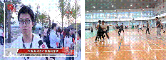 图8 接受西安广播电视台现场采访(左);参加导师杯篮球赛事现场照片(右)